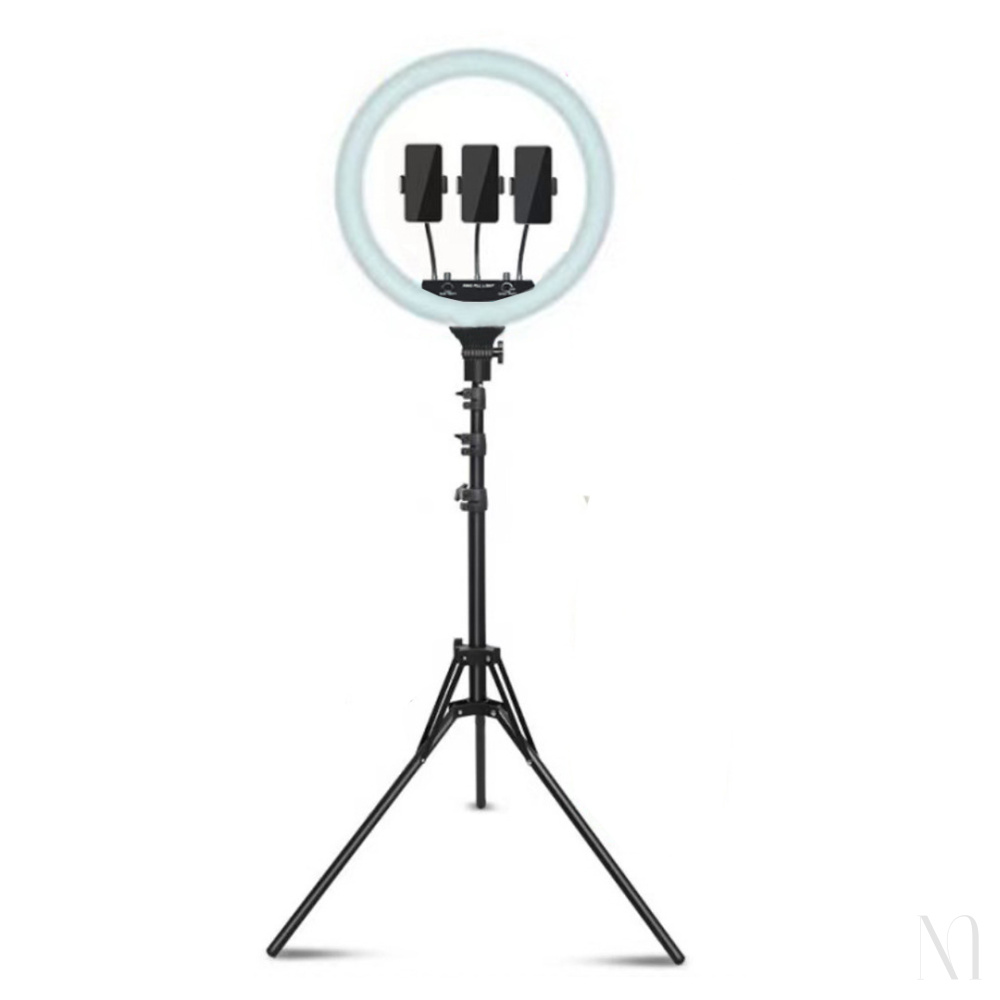 • Ring Light with 18-inch Diameter and a Tripod great for glamour shots on your cell phone• Specially designed for videos or photos taken by mobile phones, accessories include a mobile grip holder to hold and better stabilize phones• Built-in 420pcs lamps with 60 Watt power• Control mode: remote + stepless switch to adjust the illuminance• 2 pcs USB for mobile charging• Adjustable Brightness and color temperature from 3000 – 6000k• Great Addition for your Video Recording improves lighting and overall quality of your videos• Power supply: 24V DC 2.5A• Product dimensions: 54 x 58 x 7cm• weight: 3kgs