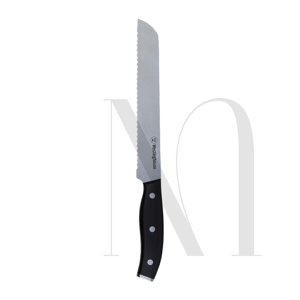 • The Stainless Steel Bread Knife for perfect bread or cake slices• 20cm 8 Inch Bread Knife with 2.5mm thickness • Comfortable and ergonomic design, safe and easy to use• Built in Stainless Steel resistant to tarnishing, Corrosion and rust for lifetime satisfaction