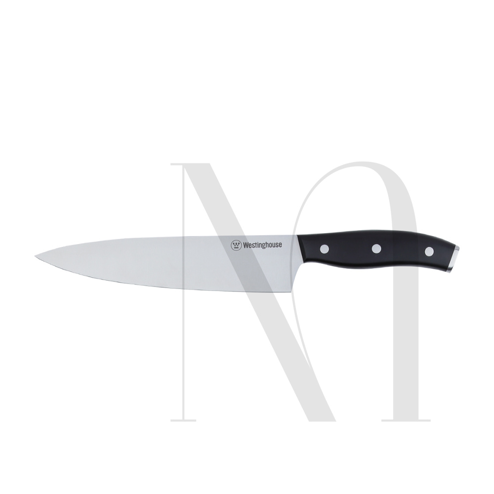 • Stainless Steel Chef Knife for easy cutting and chopping experience• 20cm 8 Inch Chef Knife with 2.5mm thickness • Comfortable, unique and ergonomic design, safe and easy to use• Built in 3CR13 bevel ground with laser light polish Blade• Built in Stainless Steel resistant to tarnishing, Corrosion and rust for lifetime satisfaction