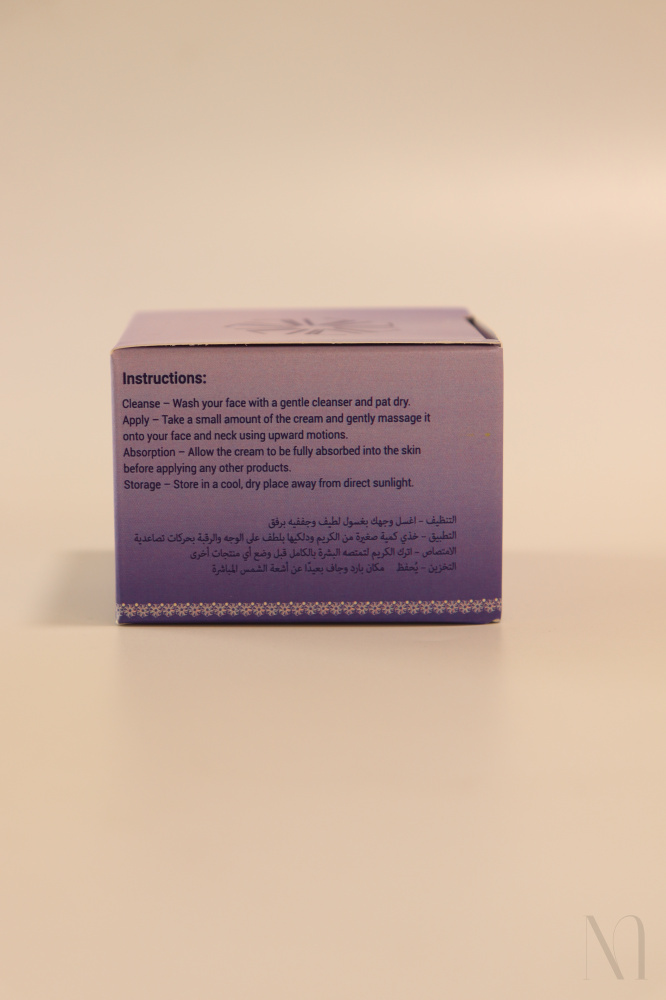 Cleanse – Wash your face with a gentle cleanser and pat dry. Apply – Take a small amount of the cream and gently massage it onto your face and neck using upward motions. Absorption – Allow the cream to be fully absorbed into the skin before applying any other products. Storage – Store in a cool, dry place away from direct sunlight.