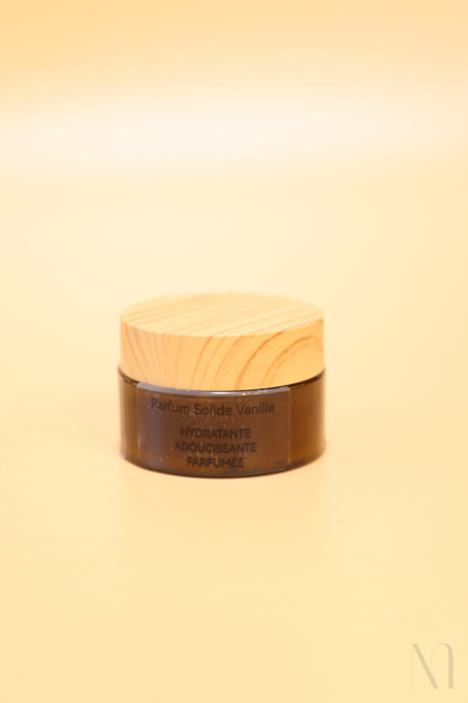Parfum Solide VanilleIngredients: Huile de Coco, Huile D'amande douce , Vitamin E, Frangrance30g 100% NaturelHandmadeHydratante, Adoucissante, Parfumée.