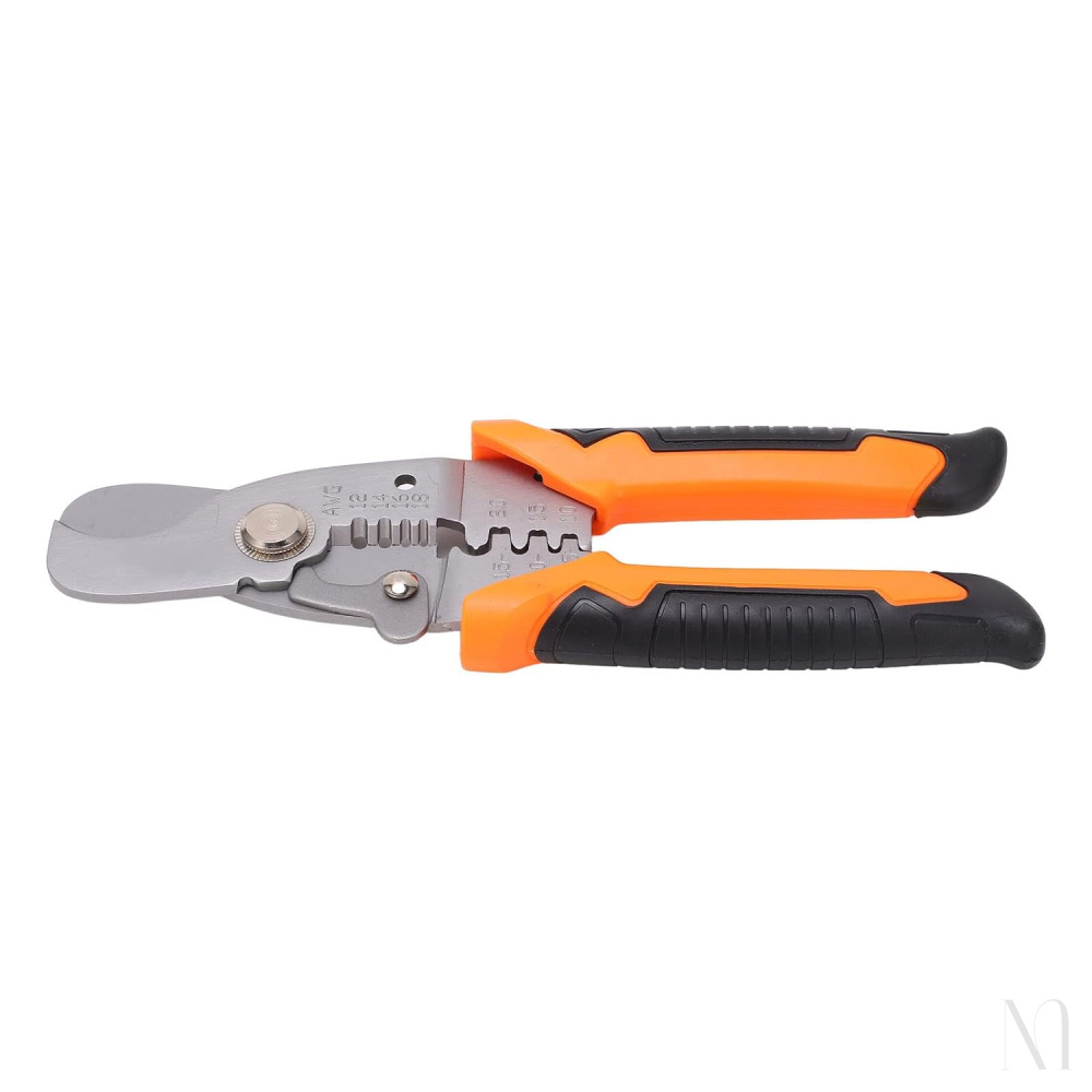 Feature:1. Quick Cutting: Comes with incisive curved blade, this wire cutting tool enables easy cutting on various cables, very practical.2. Easy Crimping: High accuracy crimping will not cause damage to the wire and terminal, making the connection firm and reliable.3. Wire Stripper: Stripping hole and cutting edge design ensures neat and clean cut incision, also very safe for the wire core.4. Better Design: Saw teeth design at the front can effectively prevent material from slipping or shifting during the operation.5. Good Material: The application of premium stainless steel guarantees high hardness up to HRC55, very durable for long term uses.Specification:Item Type: Wire StripperMaterial: Stainless SteelColour: Orange, silver.Uses: Widely used in electronic components assembly, maintenance, telecommunications industry, power cord cutting, garden twig cutting, wire mesh and leather cutting, DIY home use, etc.Package List:1 xWire Stripper