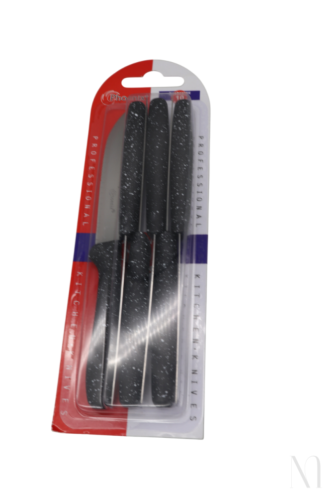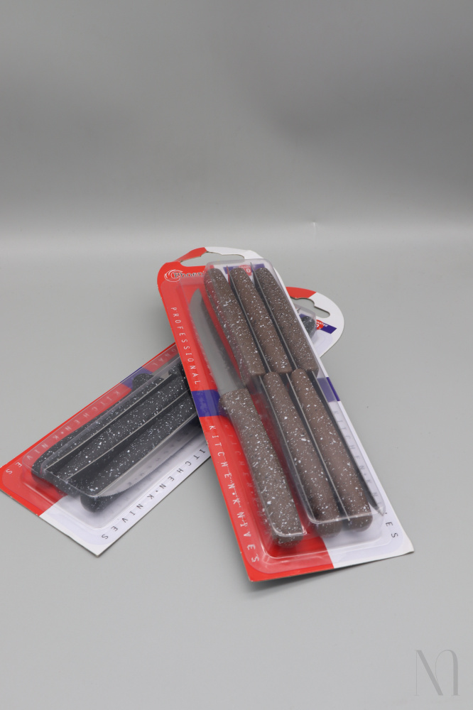 These knives are designed with a handle that features a speckled, granite-like appearance.Color: Black,Brown